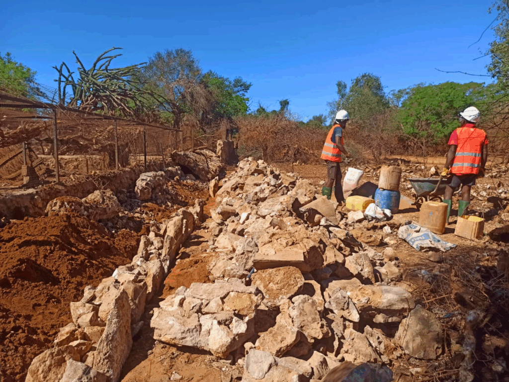 Local communities have been working hand-in-hand with Turtle Survival Alliance, not only providing essential materials like wood and palm fronds for shading structures but also physically helping to clear rocks from enclosures and make space for the tortoises. Their efforts have been critical, from rebuilding the fences washed away by the floods to clearing the well, ensuring clean water is available to both tortoises and people. Slowly, we are restoring electricity, bringing in satellite internet to improve communication, putting up new pen dividers, and building necessary infrastructure like storage rooms, staff housing, and a temporary office.