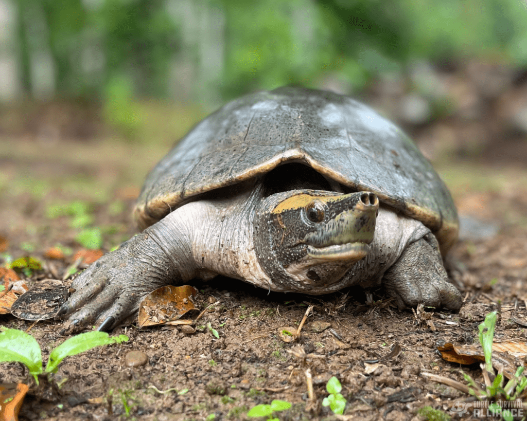 A Central American River Turtle (Dermatemys mawii), also known as the hicatee, in Belize. These turtles live in rivers, oxbow lakes, and lagoons, and during the wet season, flooded forests. Photo by Rachael Harff.