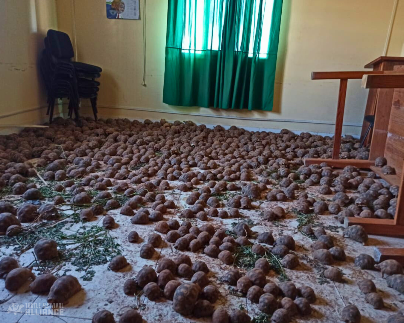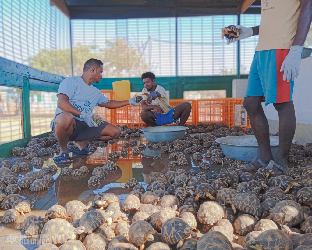 Header image: Over a thousand juvenile Radiated Tortoises (Astrochelys radiata) from a single confiscation await in-processing and veterinary inspections at our Lavavolo Tortoise Center in Madagascar.