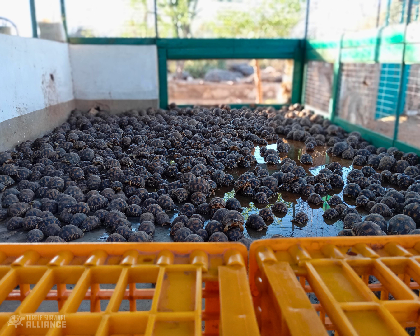 Over a thousand juvenile Radiated Tortoises (Astrochelys radiata) from a single confiscation await in-processing and veterinary inspections at our Lavavolo Tortoise Center in Madagascar.