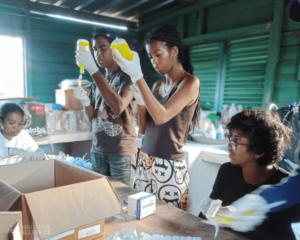 From the outset, we were fortunate to have the support of veterinarians and veterinary students from the University of Antananarivo’s Department of Veterinary Sciences and Medicine, a school that has consistently provided critical support in crisis situations. Despite the Lavavolo Tortoise Center being more than 730 km (450 mi) and three days’ travel from Tana, these dedicated volunteers have generously offered their time and skills to aid the tortoises in need, playing a crucial role in the triage process.