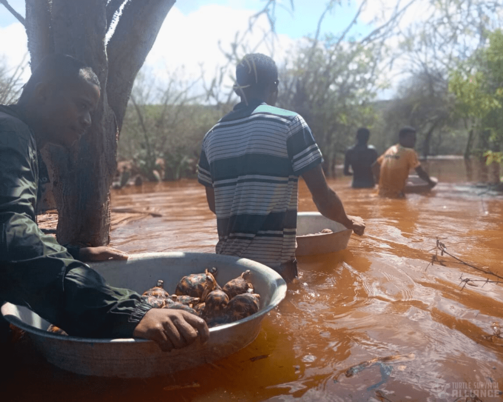 “This is an unprecedented crisis for the Lavavolo Tortoise Center,” said Hery Razafimamonjiraibe, Country Director for Turtle Survival Alliance Madagascar. “The severity of the flooding has overwhelmed our facilities, threatening the safety of thousands of tortoises in our care. Despite the devastation, our staff, local law enforcement, and community members have come together with incredible determination. All hands are on deck to rescue the tortoises from the rising waters and ensure their survival in the face of this disaster.”