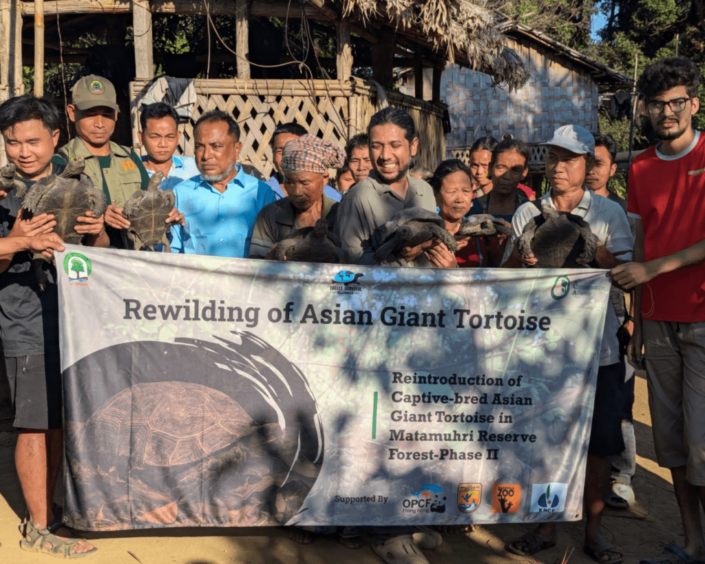 - On December 18 and 24, 2024, a total of 16 tortoises—six Elongated Tortoises and ten Asian Giant Tortoises—were released in Lawachara National Park and the Matamuhuri Reserve Forest, respectively, where they will acclimate for six months in expansive soft release pens to help ensure a successful reintroduction to the wild.